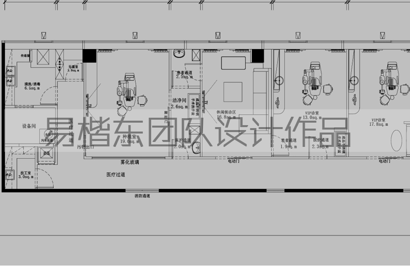 過道區(qū)域,縱深的延伸距離,拉長了空間的長度,簡約而不單調(diào),簡單的底色布設(shè)顯得干凈而大方。幾幅壁畫的點(diǎn)綴,讓整體區(qū)域有了色彩的跳動與活力。玻璃墻將每一個就診區(qū)域獨(dú)立的間隔開,既考慮了私密性,又保全了空間的專屬性。